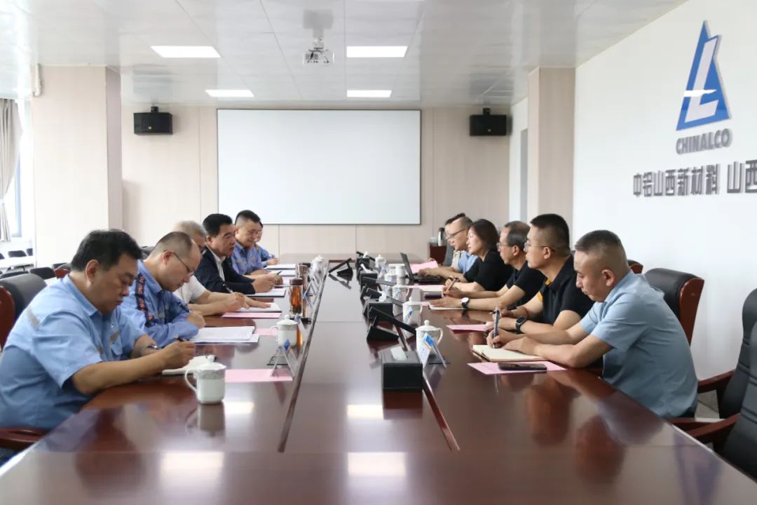 7 月 25 日,中国中信金融资产管理股份有限公司山西分公司总经理颜慧卿一行来企业考察交流。中铝山西新材料党委书记、董事长,中铝山西铝业执行董事王辛成,中铝山西新材料党委副书记、总经理,中铝山西铝业总经理王磊会见。